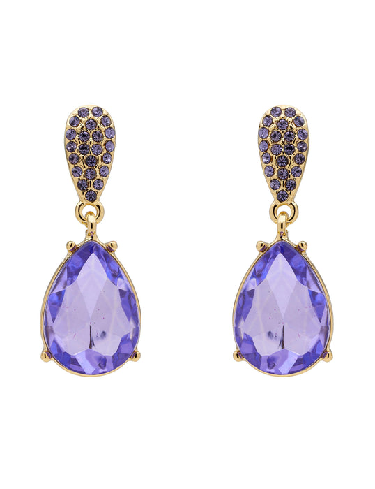 Perfect for adding a pop of colour to any outfit, the Multi Stone Drop Earrings are a beautiful addition to your collection. These stunning drop earrings feature deep violet teardrops and sparkling stones in gorgeous gold-coloured plating.